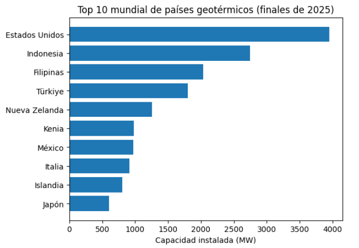 Top 10 mundial de países líderes en energía geotérmica en 2025